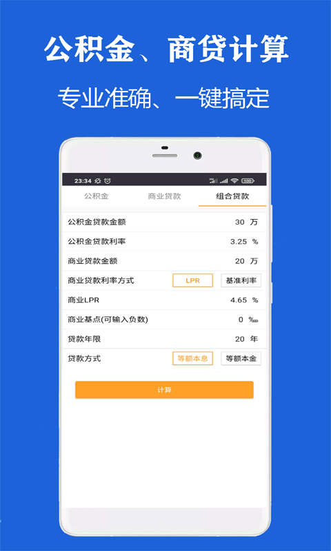 支持公积金贷款计算、商业贷款计算以及组合贷款计算