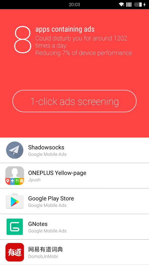它可以非常方便地将用户手机软件中的植入广告扫描出来;
