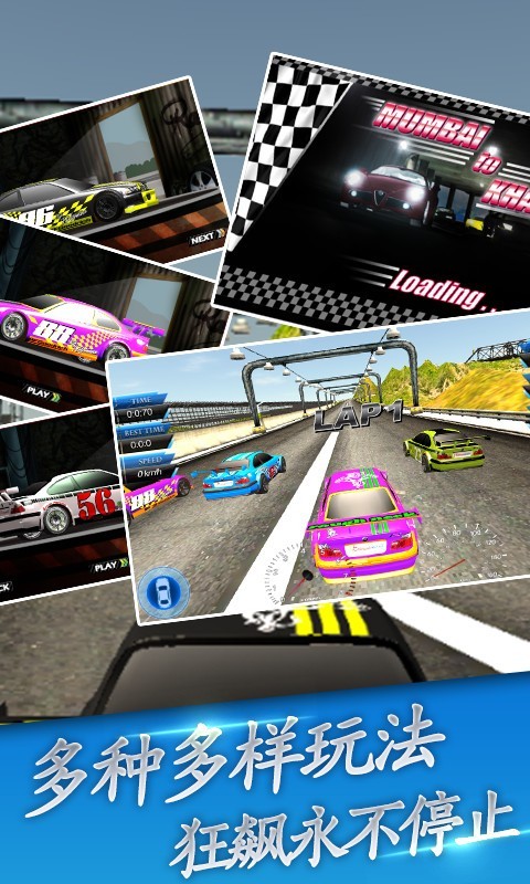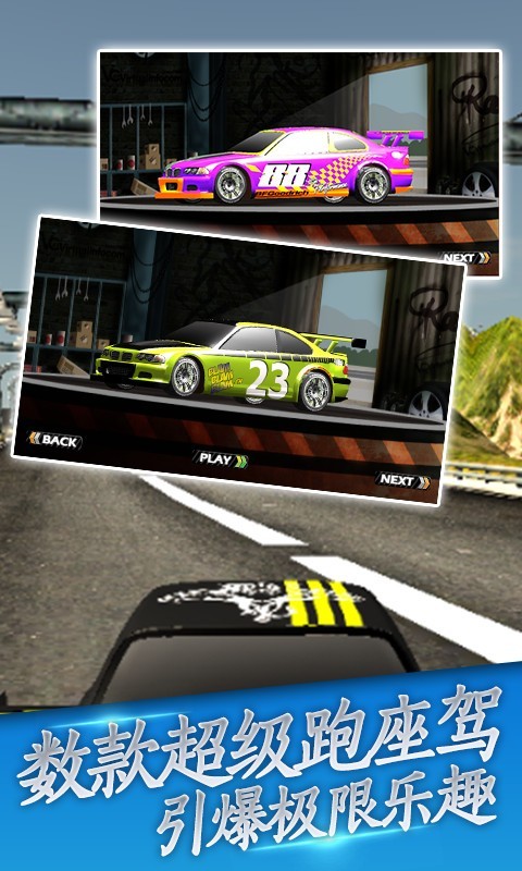 神奇极速赛车破解版真实的3D画图造型,优美的音乐背景,更好的看漂移车,定制你最喜欢的车。