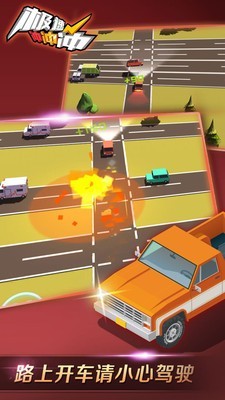 随时冲刺,跨越一切障碍,记得及时刹车,避开车辆,展示驾驶技巧。