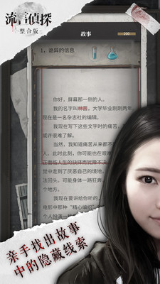 4.在故事体验中,玩家独立发现线索,与角色对话后,利用线索宣传故事。玩家的选择将影响到理解故事的不同方面。严格的推理。玩家将扮演一个神秘的接触者,通过与多个角色的聊天来层层推断事件真相。找到隐藏的凶手。