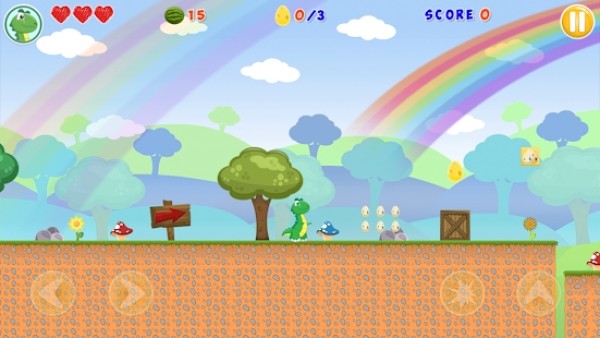 在游戏中玩家需要控制小恐龙进行闯关在闯关的过程中避开障碍物收集金蛋。