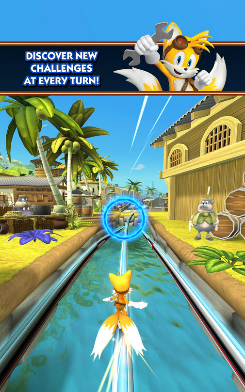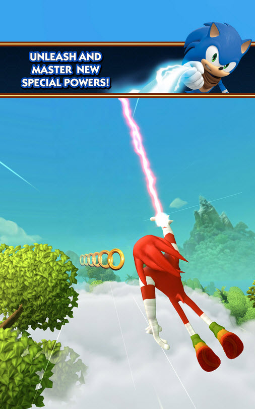 玩家应该控制音速或他的小伙伴在无尽的三车道轨道上以最高速度奔跑;