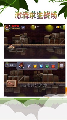在充满战争的年代,我们一定需要强大自己,才能不被欺负,游戏中不仅要躲避敌人炮弹,还需要击败他们!这激流求生战场是一款有趣的射击类的游戏。游戏中,玩家控制一名小英雄,乘着一辆小筏子,在河流之上飞速前进,在行进过程中会遇到从天而降的伞兵,也有阻住前路的战艇,只有勇往直前,才可以获得胜利。