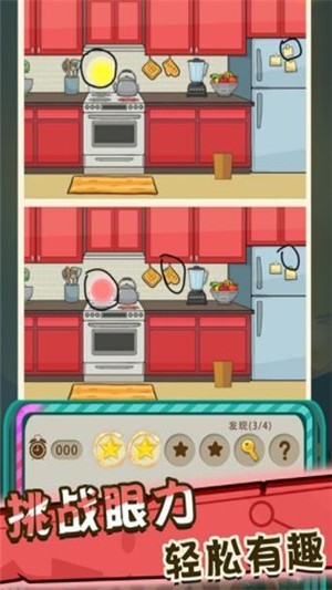 你要用你的智慧来找出两张图片中不同的部分,挑战一个个更难的关卡,最终获得胜利。