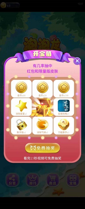 进入游戏会有超多消除关卡玩家可以自由选择,你需要掌握更多的技巧让自己顺利完成更多任务,在射击泡泡的过程中你需要选择最好的角度让自己完成更多的消除,同时超多的道具也会给你带来更多的帮助,出色的完成不同任务让自己赢得更多奖励,更多内容玩家可以不断解锁体验玩法丰富。