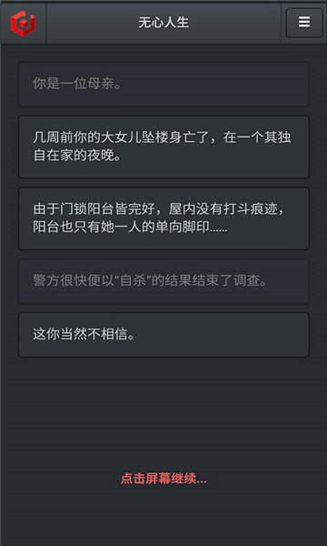 通过发现的线索你将一步步接近事情的真相。无心人生的流程并不长,不过剧情可以说是很沉重,引人深思,是一部优秀的作品。