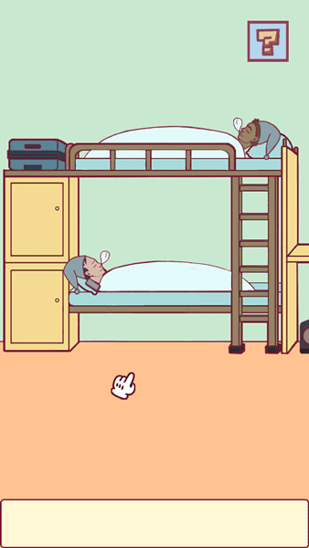 11、从上铺同学手中获得剪刀,从下面的柜子中获得猫,从行李箱获得杰瑞,将猫放在蟑螂右边,将杰瑞放在猫和蟑螂中间,等蟑螂被踩死,下铺同学放下吉他?的时候,用剪刀剪断琴弦。