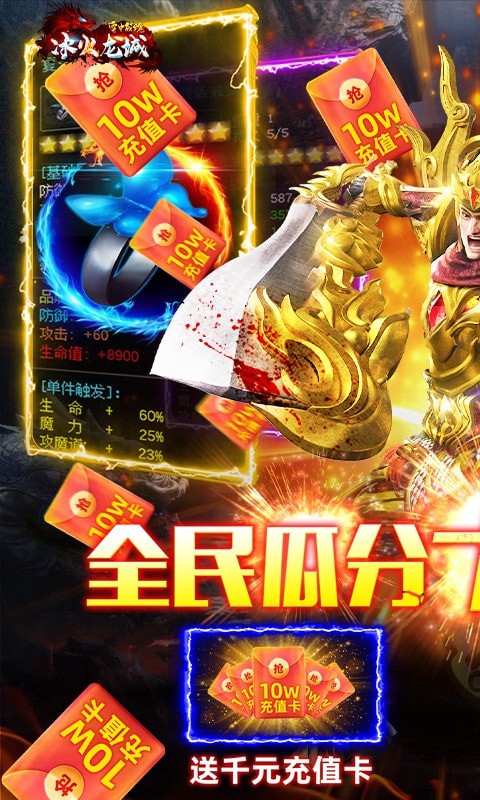 4. 登录送充值卡,在线送充值卡,打怪再爆充值卡,只要努力谁也能也能霸区