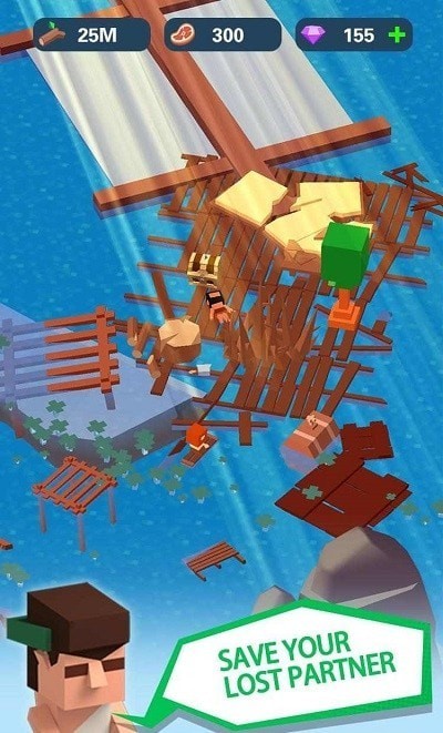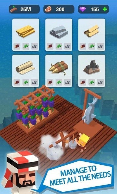 2.一开始,玩家只有一个木筏,周围没有材料和生存资源。玩家需要找到生存资源。