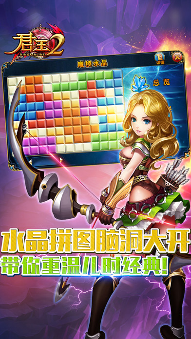 《君王2》是首款Q版西方魔幻题材的手机网游,拥有众多的横向设计玩法,如云职业、魂技、庄园、血魂、坐骑、副本(普通、英雄、异界),战场、竞技场、军团战等。更突破当今手机网游画质,是当今质量最高的手机网游。