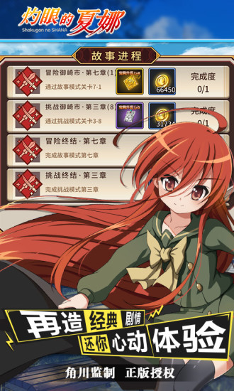 很多冒险闯关游戏咱们都有体验过,总感觉缺少点什么,缺少的是视觉效果,下面这款手游还你视觉盛宴。《灼眼的夏娜》还原原著经典,在线夏娜与零时迷子的种种经典情节,钉宫理惠的倾情献声,给无数玩家带来难于治愈的钉宫病,让每一个角色都再次散发荣光。感兴趣的话,就来下载吧!