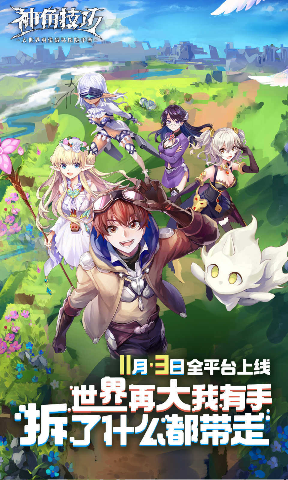 这是一款动作冒险手机游戏,围绕着破坏性武器叫做“神角技能”及其持有者。这款游戏有三个卖点。一种是充满自由的动作冒险。除了在剑和魔法世界中“杀死恶魔”和收集材料,游戏还添加了像我的世界这样的建筑元素。玩家可以自由建造自己的建筑,一层一层地建造。
