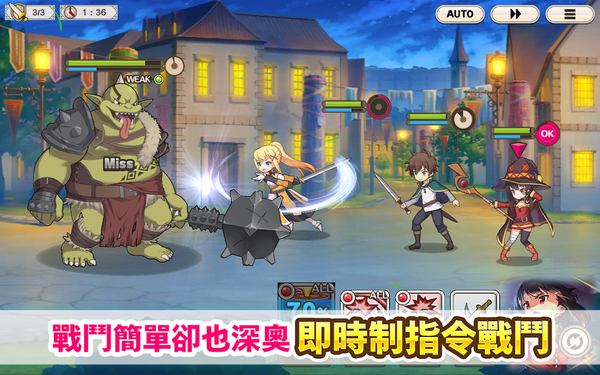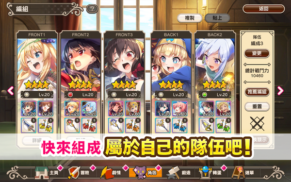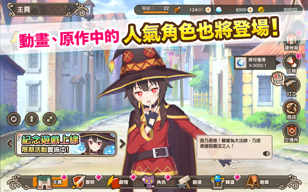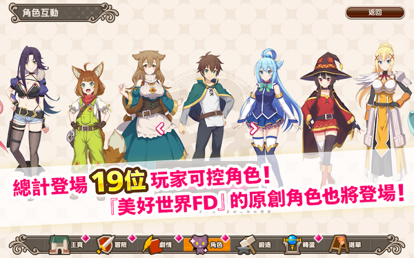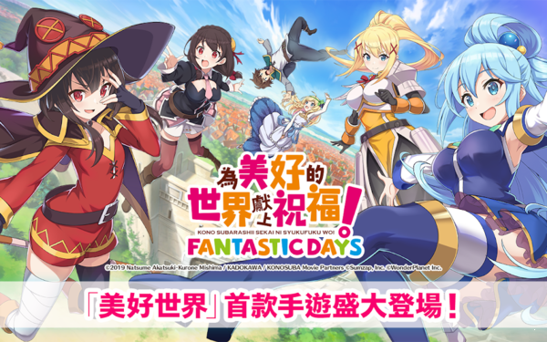 这是根据动漫改编的游戏,让我们更好的体验游戏中的剧情乐趣!为美好的世界献上祝福手游,全称为为美好的世界献上祝福Fantastic Days,一款根据经典动漫改编的轻小说主题的rpg手游。并且本站为大家带来的是该作的台服中文版,这样国内玩家体验起来就不会有语言问题,可以详细的去了解游戏的剧情。