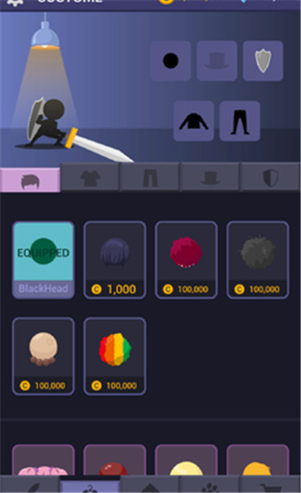 金币可购买发型、服饰、盾牌外观,还有一些武器