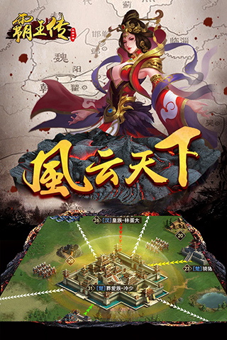 当我们拥有自己的军团势力时,能不能打败所有敌人呢!这霸王传是一款万人同服的战国战争SLG即时策略游戏,游戏以楚、汉、秦三国逐鹿中原为历史背景,集角色扮演、战争策略为一体。您将扮演战国时期的一位主公,在血与火交融的世界中,建造华美的城池,招募善战的军团,打造史诗级神器,征服敌人的城池与疆土,成为荣耀的君主,体验热血的万人国战!