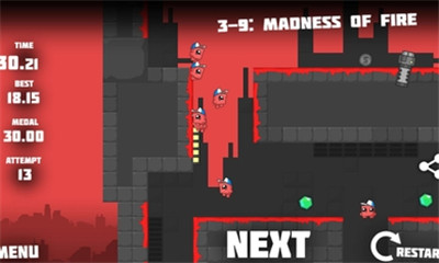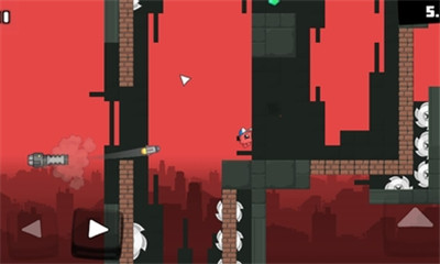 疯狂德克斯2的简单,屏幕左侧有两个方向按键,右侧有一个跳跃按键。除此之外,当德克斯跳跃到墙壁上,长按跳跃按键即可让德克斯吸附在墙壁上。大致就是全程根据情况进行左右移动、跳跃的组合操作。另外值得一提的是,游戏角色在死亡的时候还是一如既往的血腥,在玩家在感受虐心的同时增加视觉刺激。