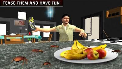我们将化身成为蟑螂,看看我们将接收到哪些有趣的任务,又能不能吓到女主人!这蟑螂模拟器是一款非常恶趣味的游戏,在这款游戏中,玩家扮演的将不是什么部族英雄,杀手刺客,而是一直可以说大部分人都很讨厌的虫子——蟑螂。虽然非人为主角的游戏不少,但是这么简单粗暴的游戏还是很少见的。好了,作为一直蟑螂你能干什么?爬来爬去?不不不,你的任务可不是这个,你的任务就是将散落在房间各处的食物给吃了。