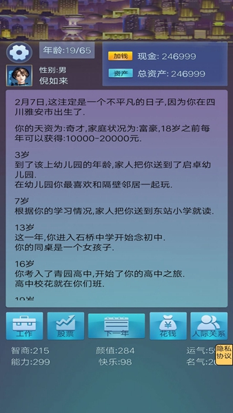 2、玩家可以选择各种各样的生活,游戏玩法很自由,可以分配属性,看人生结果。