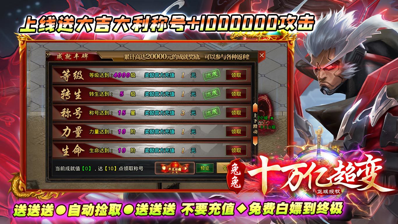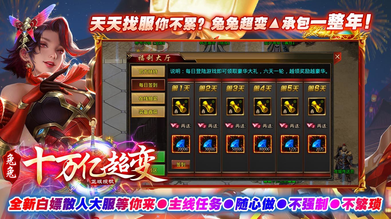 你还在担心业余时间无处可去吗,快来下载这个兔兔十万亿超变传奇游戏吧。这会让你的时间过得很快。游戏画面超豪华,色彩丰富,尤其是战斗技能充分发挥的时候,会让大家的视觉感到特别震撼。你玩得越多,就越容易上瘾。