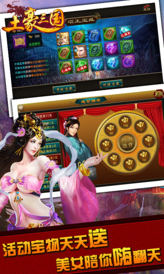 更有丰富的游戏活动:名城夺宝、武将竞技、天下争霸等活动;丰厚的游戏奖励:每天登录抽元宝,击败boss获高额元宝奖励。