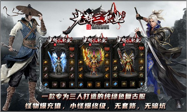 选择适合自己的职业去冒险,还能收集小弟,帮助自己去消灭boss!这光辉三职业是一款内容非常丰富精彩的经典传奇热血对战游戏,在这款游戏中拥有三种职业:战士、道士和法师。每个职业都有自己的特殊技能和属性,让玩家以自己的方式体验游戏。在游戏中还可以组队战斗,挑战各种怪物和boss,并通过完成任务和活动获得奖励和装备,不断提高自己的力量和水平,感兴趣的玩家快来下载体验吧。