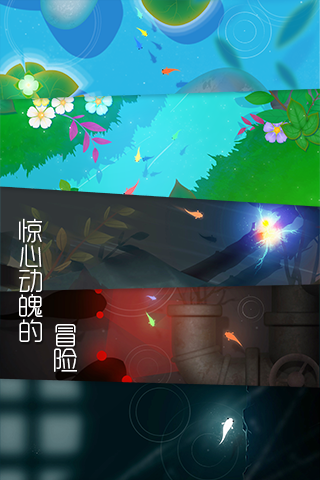 1、主人公小鲤鱼对未知世界探索的旅程,一段净化的旅程,也是一段自我追溯和成长的旅程,游戏通过跌宕起伏的关卡、唯美如诗的画面、治愈人心的音乐,将玩家的情感带入一场自然又神秘的旅途中,希望以此传递给玩家内心的纯净和平和。