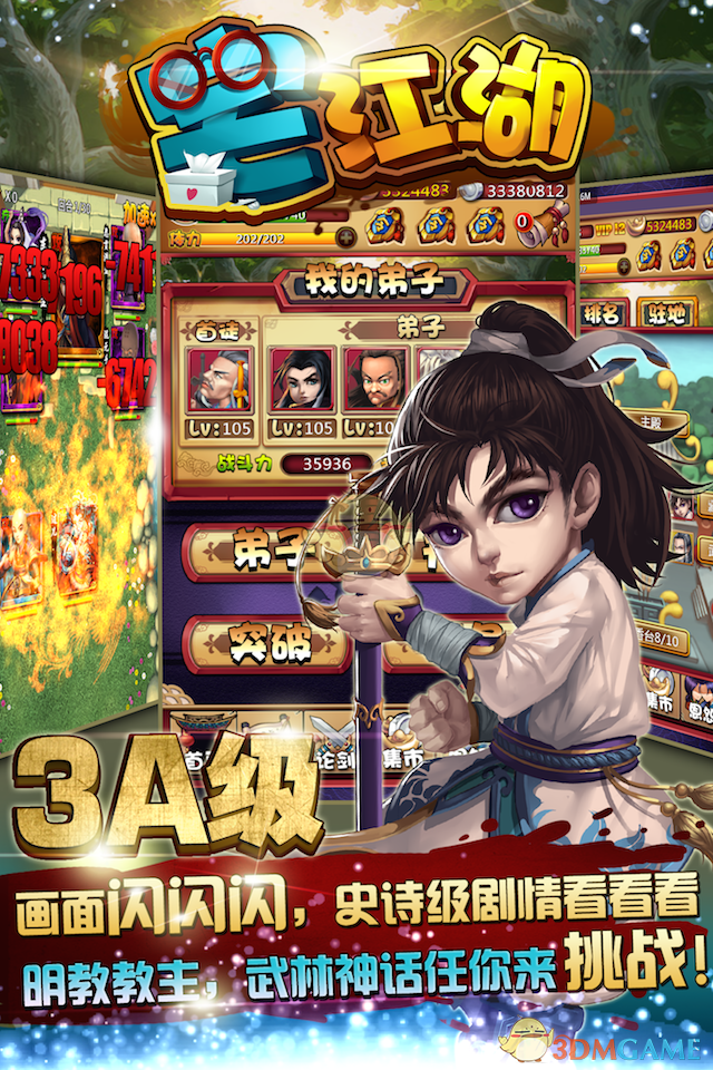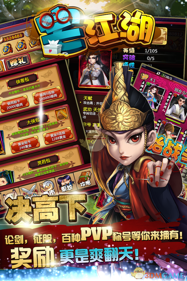 炫酷Q版武侠卡牌手游《宅江湖》闪亮登场!3A级画面闪闪闪,史诗级剧情看看看,明教教主,武林神话任你来挑战!紫卡橙卡随便合成,狭路相逢,门派互抢,PK爽翻天!
