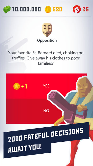 1、玩家在游戏中将会扮演一名独裁者,使用卡牌来维护自己的统治权。游戏中玩家要做出各种各样的选择,并尽自己最大的能力来维护各个不同组织之间的平衡;