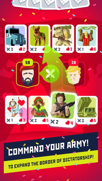 1、玩家在游戏中将会扮演一名独裁者,使用卡牌来维护自己的统治权;
