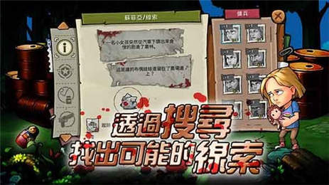 2、取得佣兵后可在设施搜索过程发现强化体质药剂以及武器零件,亦可提高武器能力及专精武器经验,让佣兵群的战力大增。游戏过程将遭遇许多设施,必须派出佣兵并搭配特殊武器抵挡一波波丧尸的来袭,成功抵御后即可在设施中搜寻,甚至寻得重要的庇护所,安置组织的根据地;