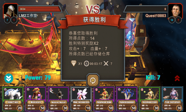 乐趣在于可能看起来最弱的角色可能是最强大的,出其不意的感觉,惊呆对手!胜利就得到钻石,钻石购买不同种类怪物,不需要花一分钱。