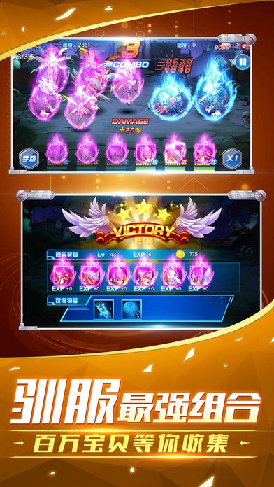 在战斗界面中,《暴龙超进化》采用当下最流行的界面布局,简单易懂、清晰明了,手指轻戳,即可随意发动数码宝贝的华丽大招,连击快打!分分钟让酷炫的技能特效“震碎”你的全屏,让敌人感受到绝望!