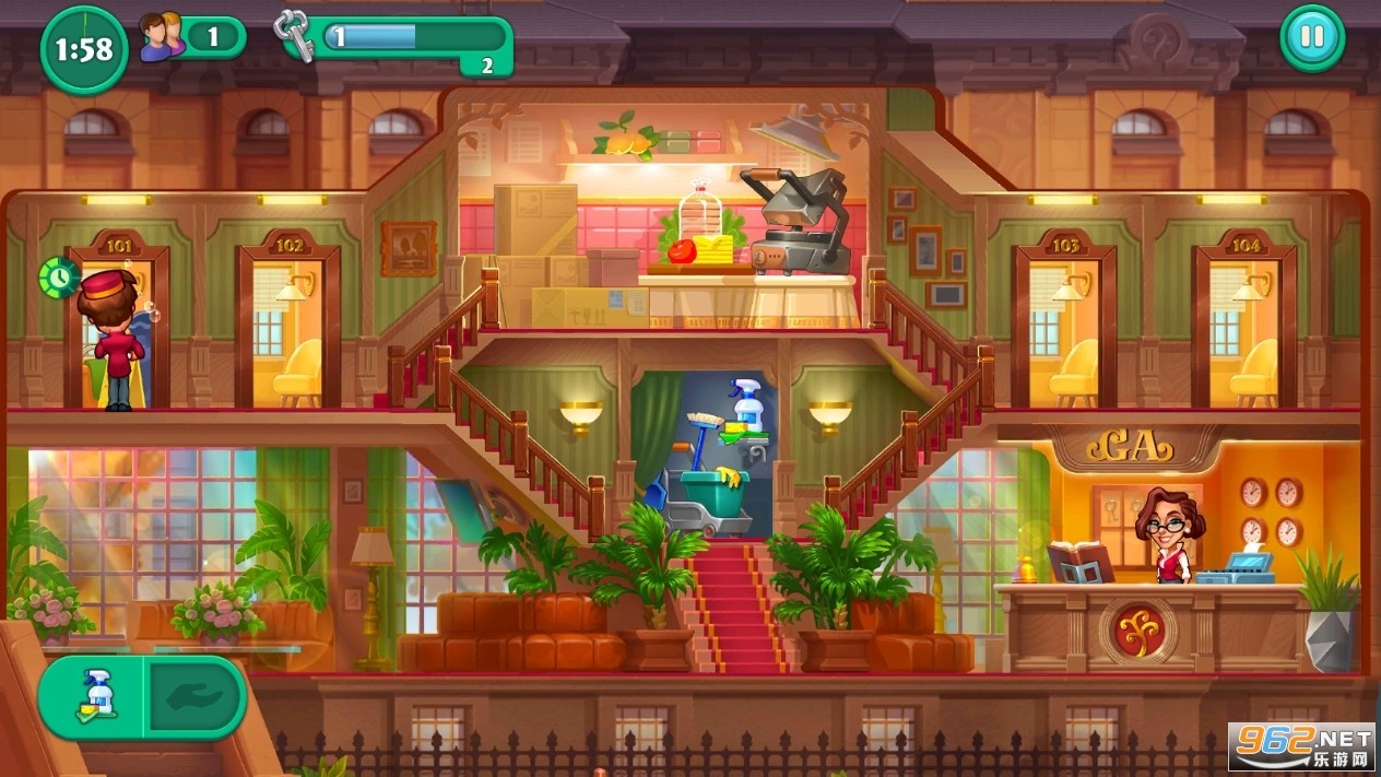 快速完成接待工作,分配免费房间,指挥员工对需要打扫的房间进行清理。游戏的关卡丰富有趣。推荐给喜欢休闲游戏的玩家。