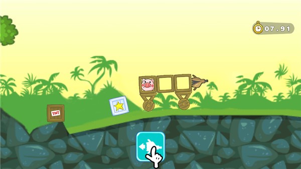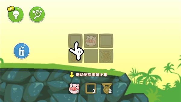 1.操作简单,用手指拖动屏幕道具,完成游戏操作,组装一辆供猪骑乘的小车。