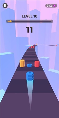 我们需要控制自己的彩色方块进行跑酷,看看我们到达终点后能不能得到最高分。这颜色叠加游戏是一款画风简约的卡通堆叠闯关游戏,在游戏中我们需要控制属于自己的彩色方块进行跑酷,我们需要做的就是收集赛道上所有颜色一样的方块,让方快越叠越高,只有这样最后我们在抵达终点的时候,分数才能越好。