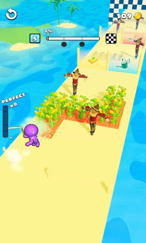 在农村长大的孩子应该都做过这样一件事:在冬天田里刚种下种子,用了保温膜蒙住,而因小时候不懂事,在田里到处乱踩蹦来蹦去搞破坏,引得无数村民的挨骂。现在可不能这么干了,但可以在农场土地酷跑里干,这是一款3D橡皮人跑酷游戏,这款游戏将跑酷和种植融合在了一起,玩家需要操控属于自己的橡皮人一边跑酷一边收集肥料,收集的肥料越多,那么到终点的时候收获的农作物也会越多。