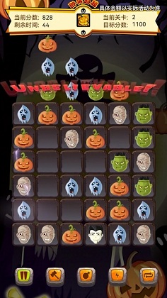 下班回家坐公交,或者在动车高铁上,自己处于休闲时刻最好玩什么,当然玩休闲类的游戏来消磨时光。万圣夜消消乐这是一款万圣节主题的消除闯关游戏,游戏继承了非常经典的相通图案消除玩法,玩家需要在指定的时间内,将万圣南瓜头通通消除,消除的南瓜头越多,那么最后的得分也会越高,游戏过程中还会时不时掉落超强道具,玩家一定要把握好机会得到它们,这些道具能够帮助你更快的进行闯关。