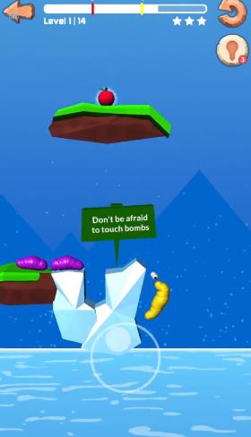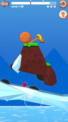 3.玩家需要移动鼻涕虫,然后静止不动,离开身体,然后不停地堆积,最后才拿到苹果。