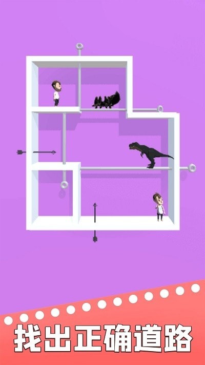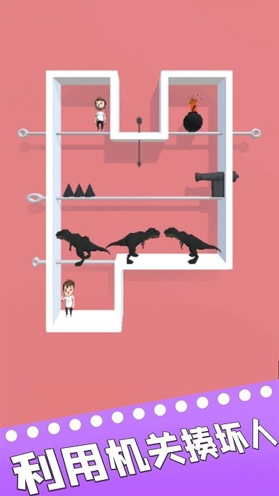 一款有趣的休闲闯关游戏,你的任务是营救被困的人员,现在你需要用各种方法把被困的人救出来,如果你不注意,恐龙会吃掉它们,并且游戏中有很多关卡,每个关卡都有很多威胁。
