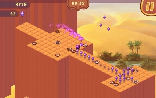 玩家将帮助一只穿山甲穿过重重障碍到达终点,利用手指的滑动和调整方向能让穿山甲进行滚动,从而收集更多的金币和躲避障碍到达终点。当然,游戏不会让玩家如此简单到达目的地,除了各式各样的地形、障碍和陷阱不断阻碍玩家外,你还需要不断收集路途中的紫色水晶,因为如果玩家意外滚出道路边缘或需要进行下次的滚动时,都需要消耗一个紫水晶来换取一次机会,如玩家在到达终点前就耗光紫水晶的话,游戏则会结束并需要你重新开始挑战关卡。