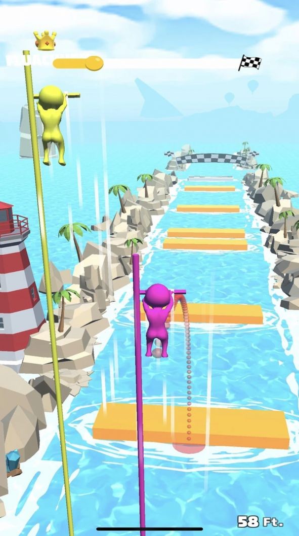 棍子跳远官方版中将会有着众多不同的高度的棍子来帮助玩家进行跳远,玩家想要顺利的在这些关卡中跳的更快更远就需要让自己能掌握好这些跳跃的距离,只有让自己成功降落到跳板上才能进行下一次的跳跃,如果落入水中将会立即遭到淘汰,从而导致游戏失败。