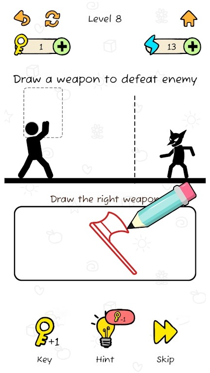 画出武器2这个游戏有8个独特的地图,可以测试你的技能。精致的图像将让玩家体验到更舒适的挑战。游戏的关卡很丰富,每一个关卡都是对玩家思维能力和绘画能力的巨大考验。