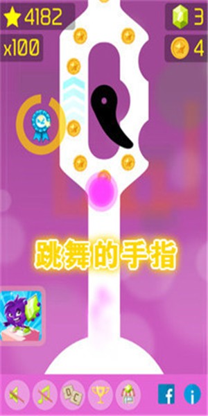 游戏中我们需要绕过移动的障碍物,避免碰触它们,这样我们才能随着音乐的节奏到达胜利点。这《跳舞的手指》是一款好玩的休闲节奏游戏,而且在游戏中,你将跟随音乐闯关,比赛中会有很多的障碍,你需要根据音乐的节奏避开这些障碍,这很是有趣,然后游戏中还很容易玩,并且各种道具帮助你起飞,那还等什么,感兴趣的下载去体验吧。