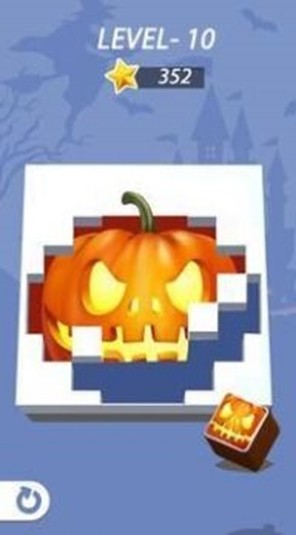 3、很多残缺的方块组合成为一张完整的图片,完成系统关卡,解锁更多的块状皮肤。