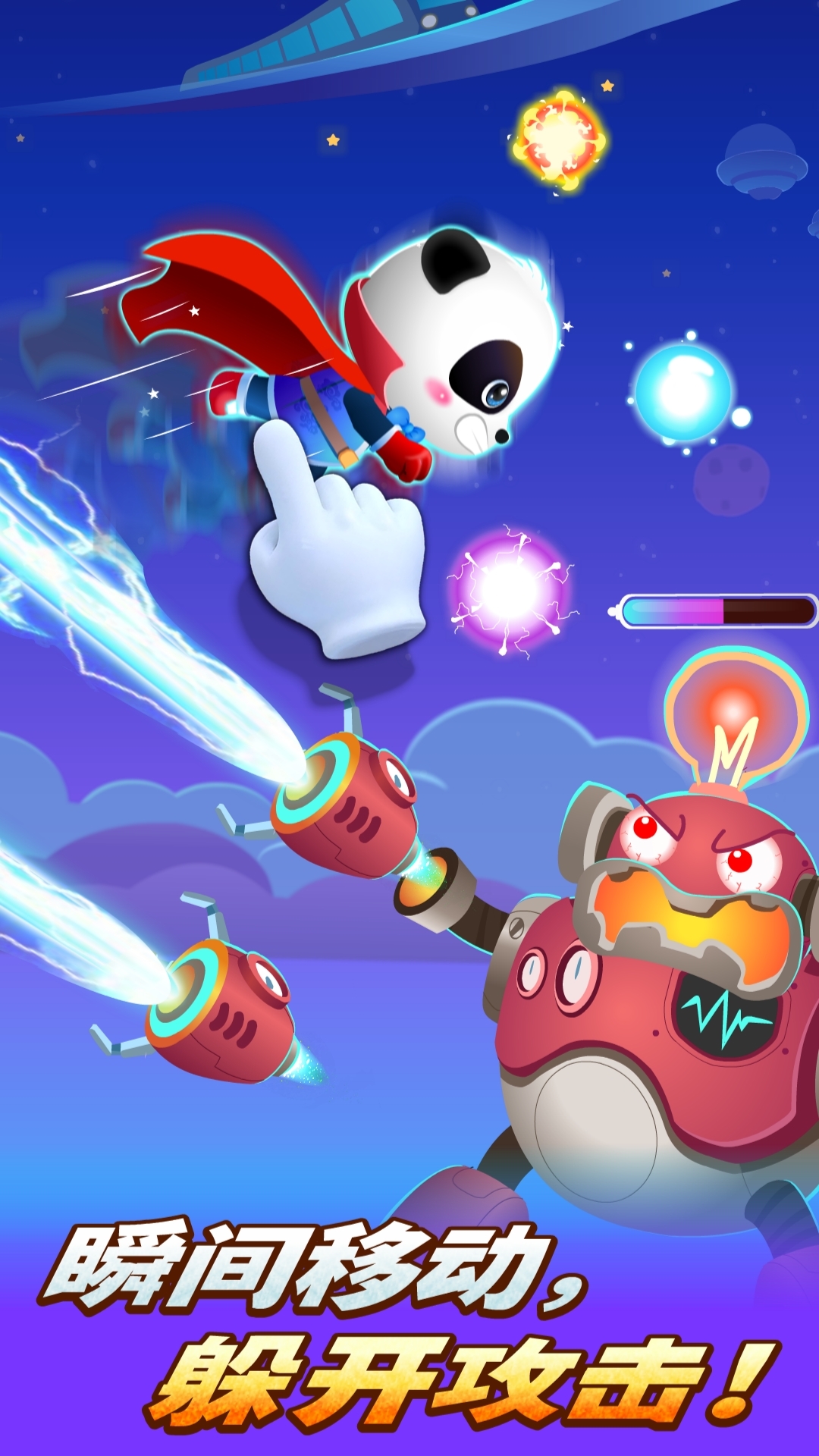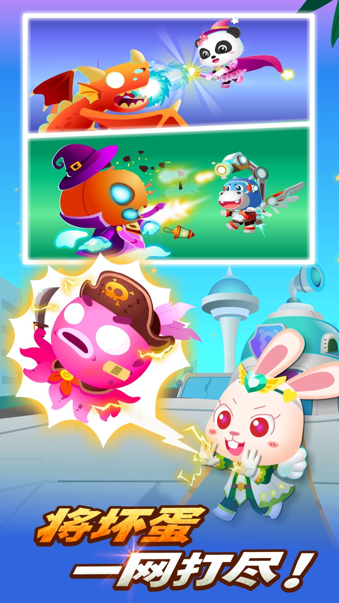 在一个虚拟的世界成为英雄来同可恶的敌人进行战斗,培养每一位宝宝的主人翁态度,极致的瞬移来躲避技能的攻击,将所有的坏蛋能够一网打尽,升级你所有的装备系统让你的英雄变得更加的强大。
