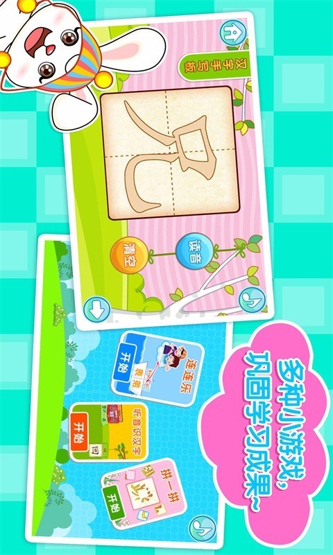 如何才能让孩子更快的接触中华汉字呢?不妨试试这款游戏吧!这儿童学习汉字是非常适合用于幼儿的识字启蒙应用。汉字是幼儿阶段重要的学习内容,本应用精心编排了多个基础汉字,并配以拼音、笔画、常用词组、句子以及精美的插图,非常适合用于幼儿的识字启蒙。