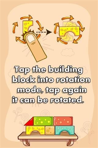 宝宝积木:如何发挥拖动构建块向左或向右移动。点击进入旋转模式的构建块,再次点击它可以旋转。点击屏幕让积木下降。倒在地上的积木失败。积木抓住得分越高。