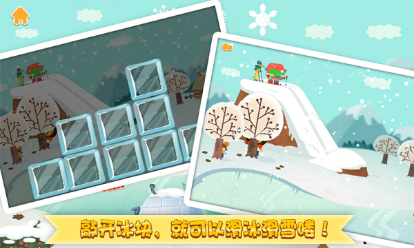 3. 盖房子游戏:多纳也想有一座小冰屋,用一块块冰砖帮它盖起来就可以啦!这个单元的游戏还有很多,快去体验吧!