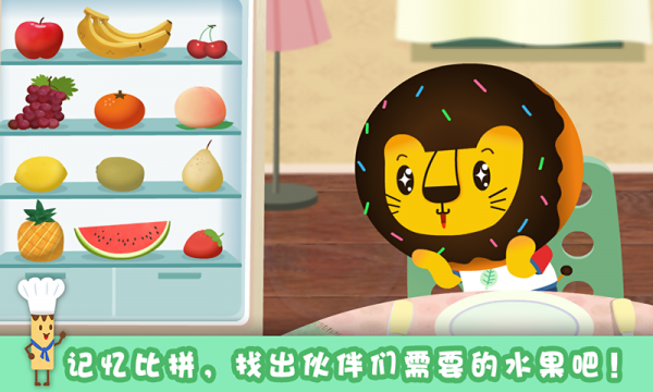 ★ 切水果:轻轻拿起水果刀,将好吃的水果切开就可以喂给小动物吃啦!